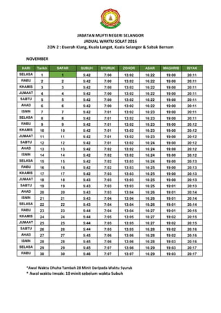 Waktu Solat Selangor 2016 Zon2 30okt2015